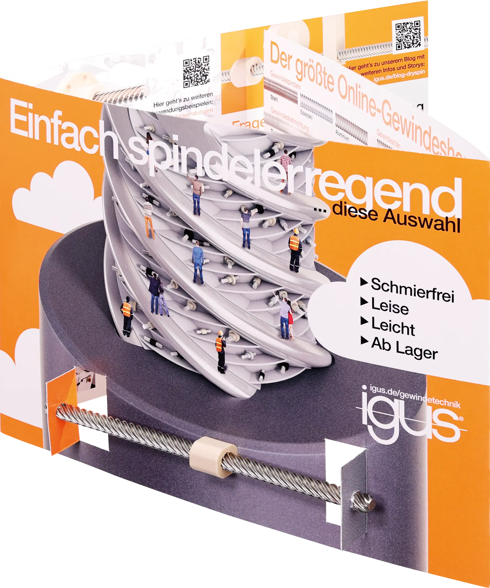 Klappkarte mit integrierter Gewindespindel und optionaler Anfrage für passende Gewindemutter