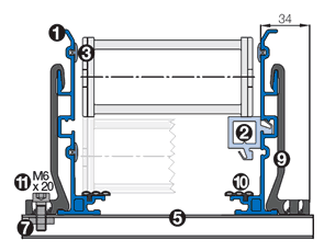 10. Option - serre-câbles à rail en C intégré avec clips chainfix ou peignes serre-câbles