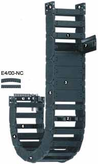E4/00-NC = chaîne porte-câbles également disponible sans précontrainte