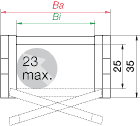 Let op: naast de uitwendige breedte van de kabelrups, is er 31 mm voor de breedte van de twee glijelementen!