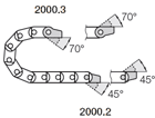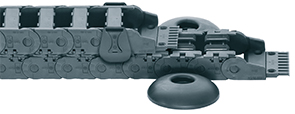 en verder geoptimaliseerd voor igus® E2/000. Grotere glij-oppervlakken van de autoglide dwarsverbinders waarborgen een nog langere levensduur van het systeem. Een clip on geleidingselement waarborgt betrouwbaar dat de kabelrups goed is uitgelijnd op de eerste meters van de verplaatsingsweg. De excentrieke geleidingen zijn elke 2 m vastgemaakt aan de grond.