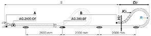 Wij adviseren dat het ontwerp van uw autoglide-systeem wordt gedaan door onze engineers. In geval van verplaatsingswegen tussen 4 en 10 m adviseren we een vrijdragende kabelrups.