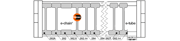 Ondersteuning van het onderste deel van de rups - modulaire set, afleggoot uit één stuk voor de onderloop van de kabelrups. Uw breedte, hoogte en kleur - we leveren de ideale kabelrups, samen met het afleggoot systeem, installatieklaar voor op uw machine of toepassing. Bespaar tijd op inkoop en ontwerp.