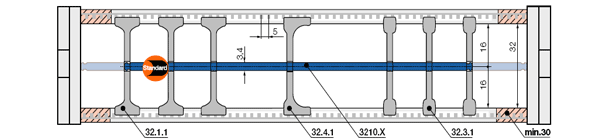 - Tand en groef voor ideale laterale stabiliteit, hoge schuifkracht bij lange verplaatsingswegen en voor grote vrijdragende lengten