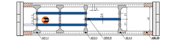 - Tand en groef voor ideale laterale stabiliteit, hoge schuifkracht bij lange verplaatsingswegen en voor grote vrijdragende lengten