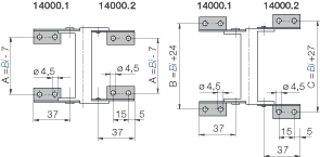 Beschikbare inwendige breedtes Bi: 75 tot 462 mm