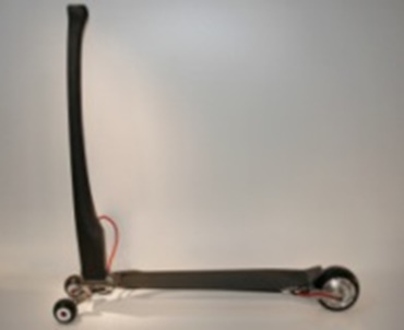 Seine Idee: ein Elektroroller mit einer innovativen Lenkkinematik. Unzählige Stunden hat der Diplomand mit der Fertigung für seinen Roller verbracht. Resultat der vielen Mühe ist ein Elektroroller, der mit Akku und Motor weniger als 5 kilo wiegt.