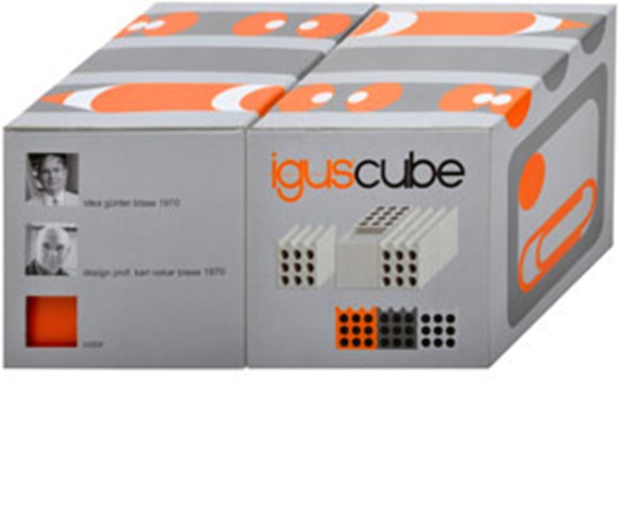 Unter der Leitidee der Firma igus® von 1964 „gebt mir Euer schwierigstes Spritzgussteil und wir sorgen für eine Lösung“ entstand die Idee zur Entwicklung eines eigenen Werbegeschenks. In den frühen 70er Jahren wurde die Idee des iguscube von Firmengründer Günter Blase und seinem Bruder, dem Design Prof. Karl Oskar Blase erstmals umgesetzt. Die ersten Versuche waren leider erfolglos, da das Herstellen des dickwandigen Designobjekts im Spritzgussverfahren lange Zeit nicht lösbar war. Nach weiterer Entwicklung in den letzten Jahren wird der quadratische Organizer, der, je nachdem wie man ihn dreht, zur Ablage oder zum Stifthalter wird, nun aus der eigenen Produktion als Werbegeschenk, Designobjekt und Qualitätsmerkmal der Spritzgussprodukte angeboten.