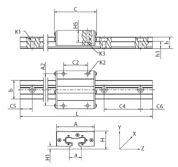 Anschlussmaße wie TW-01-Baureihe und viele handelsübliche Kugelführungen. Verwendbar auf Führungsschienen des Typs TS-01-XX