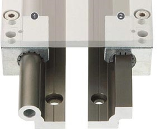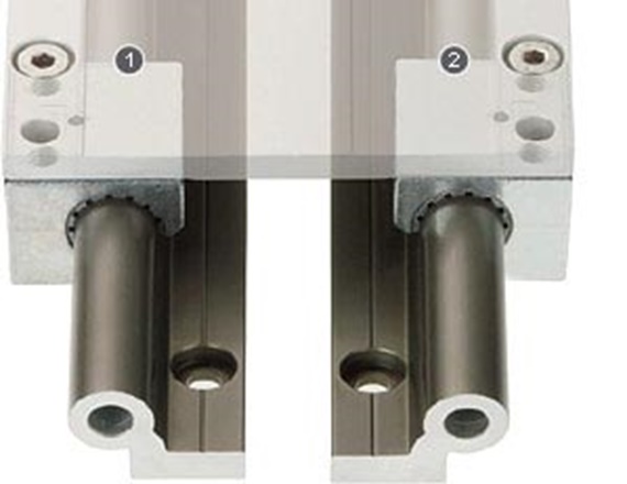 Beim Einsatz von Systemen mit zwei parallelen Führungen muss eine Seite als Loslager ausgelegt werden. Für jede Einbaulage, ob horizontal, senkrecht oder seitlich, gibt es die geeignete Fest-Loslagerlösung. Diese Einbauweise verhindert eine Schwergängigkeit bzw. ein Klemmen der Führung bei Parallelitätsabweichungen zwischen den Führungen. Realisiert wird die Loslagerung durch die kontrollierte Erweiterung des Spiels in die Richtung des voraussichtlichen Parallelitätsfehlers. Somit entsteht auf einer Seite ein zusätzlicher Freiheitsgrad.