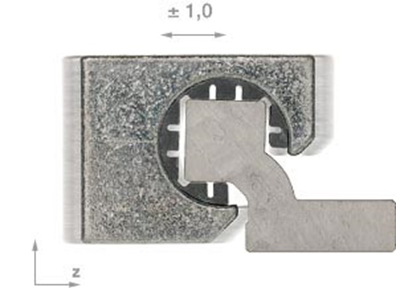 Obwohl es sich bei drylin® W um ein Profilschienensystem handelt, können Drehwinkelfehler um die x-Achse ausgeglichen werden. Hierzu steht ein Winkel von +/- 7° zur Verfügung. Verspannungen, wie man sie bei der Montage von Blechteilen kennt, werden effektiv eliminiert.