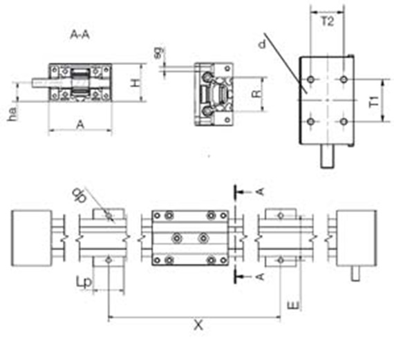 | Bestellnummer | X | E | LP | dp | T1 | T2 | d | ±0,2 | ±0,25 | ±0,25 |