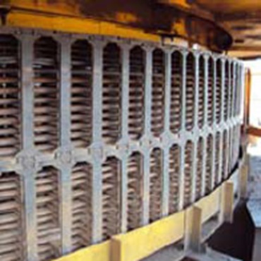 400° Drehbewegung in einem Krankopf. Große Kreisdurchmesser mit hohen Füllgewichten sind so möglich.