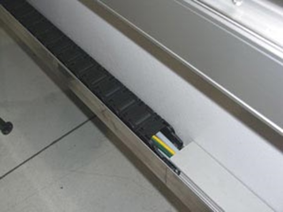 Die Energiezuführung in geschlossener Variante für das verfahrbare Bedienpult. Sie verhindert das Eindringen von Spänen oder anderen Fremdstoffen.