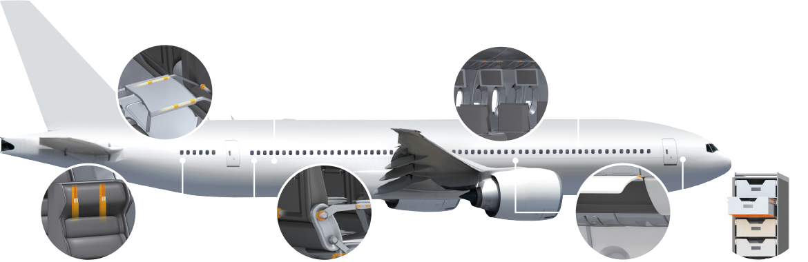 De lucht- en ruimtevaartindustrie omvat veel verschillende gebieden: Naast de vliegtuigen zelf (zoals vliegtuigen, helikopters of drones/UAV's), omvat het ook de luchthavenomgeving, inclusief grondondersteuning (GSE) en ruimte rijweg. De verschillende segmenten stellen verschillende eisen. Licht gewicht, lange levensduur, stille werking en hoge robuustheid behoren tot de belangrijkste eisen waaraan onze motion plastics voldoen. Ze voldoen ook aan de brandbeveiligingsnorm FAR 25.853. Ons brede assortiment biedt kosteneffectieve oplossingen in alle segmenten - altijd in overeenstemming met ons motto: Verbeter techniek, kosten omlaag.