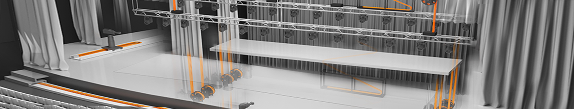 Elk podium is uniek, hetgeen betekent dat componenten niet alleen krachtig, duurzaam en efficiënt moeten zijn, maar ook perfect op elkaar aan moeten sluiten. Theater en podiumbouw kennen specifieke technische uitdagingen. Deze uitdagingen omvatten hoge belastingen, zoals die optreden op traversen, podiumverlichting of complete podiumplatforms, welke veilig en betrouwbaar moeten kunnen bewegen. Daarnaast moet technische apparatuur geruisloos en uit het zicht functioneren, zodat ze niet met de voorstelling interfereren. igus® maakt energietoevoersystemen, zeer flexibele kabels en kunststof lagers die exact aan deze eisen voldoen. Omdat igus® bouwpakketten en een breed scala aan componenten levert, is het mogelijk om snel en eenvoudig maatwerkapplicaties te implementeren.