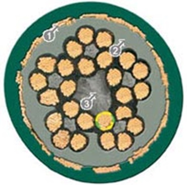 De son côté, le blindage exerce une protection antitorsion sur la structure toronnée.
